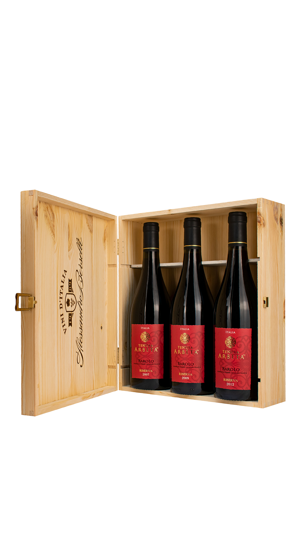 Product Catalog / Red Wines - Gift Packages / Barolo D.O.C.G. Riserva 2007 - 2009 - 2012 con scatola di legno