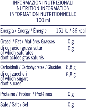 White grape must (Grape, SULPHITES), Water, Concentrated lime juice, Carbon dioxide (E290), Natural avour, Stabilising agents: Carboxymethylcellulose (E466), Preservatives and Antioxidants: Dimethyl dicarbonate (E242), SULPHITES. Bottled in a protective atmosphere